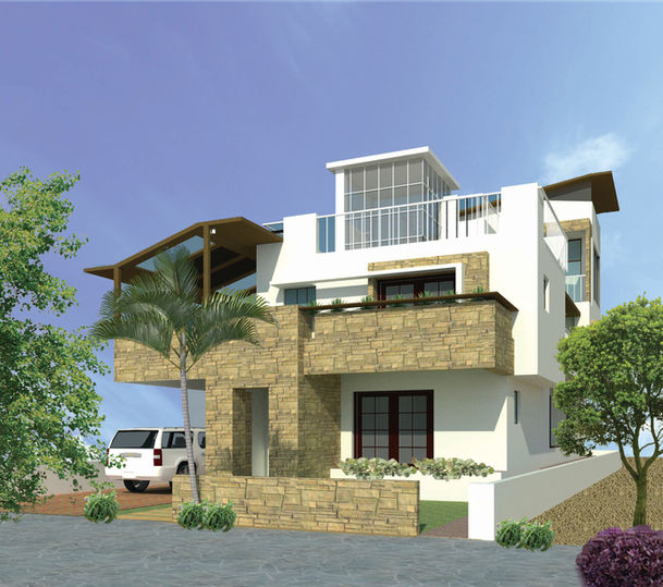 A duplex villa designed for a small family of four is built in two levels. The villa houses the common rooms of the house in the ground level with all the private rooms accommodated in the first floor.
